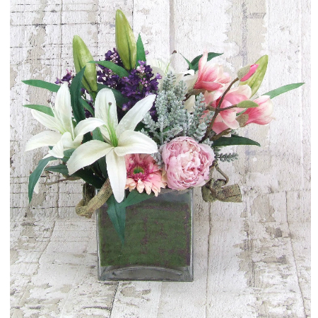 Native Arrangement In Rectangle Glass Vase