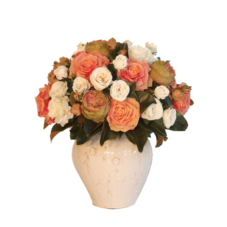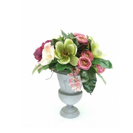 Magnolias & Roses in Rust Urn
